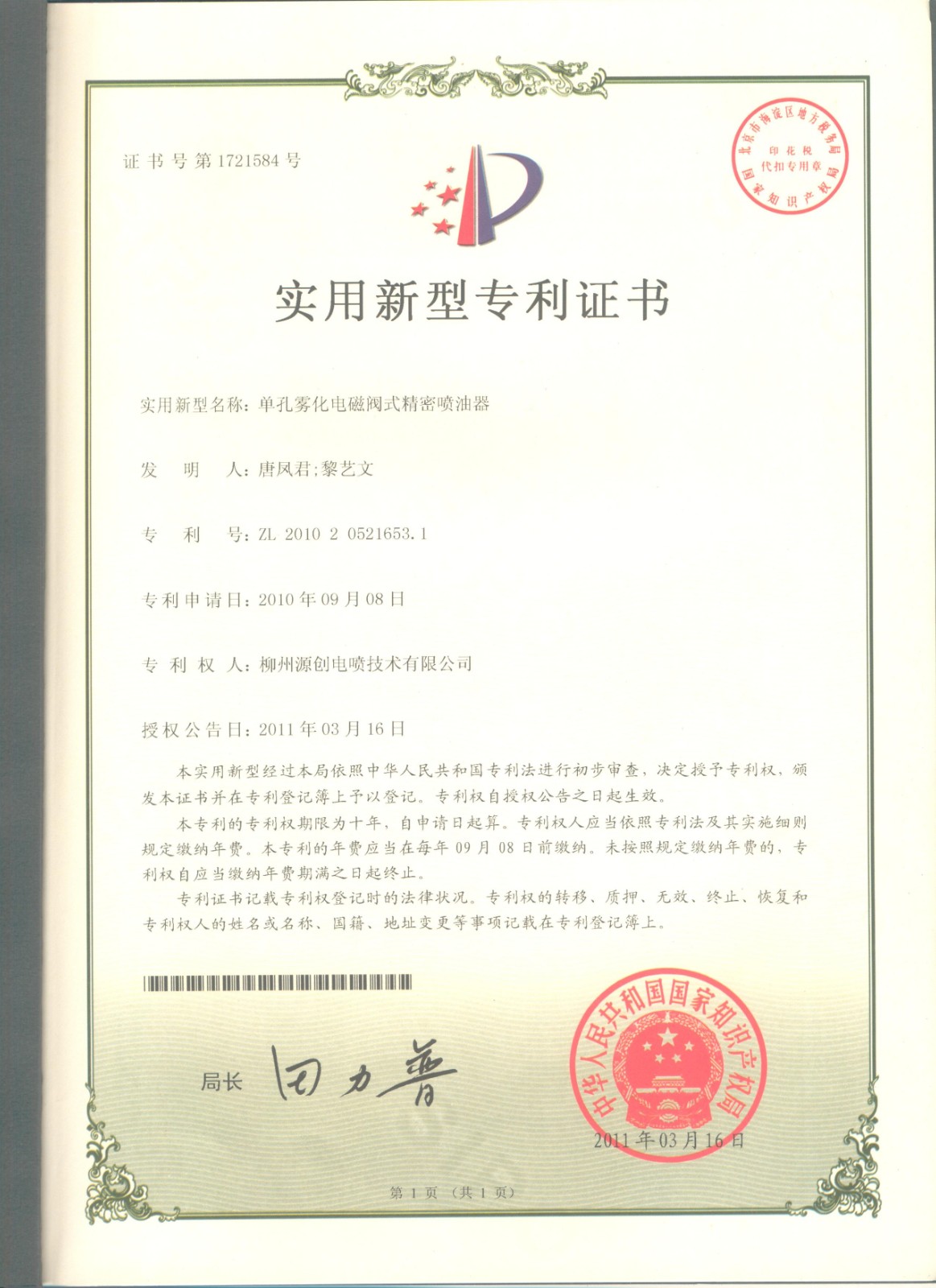 柳州源创电喷技术有限公司,是研发和制造汽油机汽车、摩托车喷油器、甲醇喷射器及柴油车后处理SCR系统尿素喷射器等产品的国家级高新技术企业。 中国喷油器国家标准的起草单位,公司起草的《汽油机电磁阀式喷油器总成 技术条件》及《汽油机电磁阀式喷油器总成 实验方法》两项国家标准已于2011年实施。 拥有系列喷油器发明专利,是中国唯一能做喷油器OEM配套的公司。 通过TUV公司的TS/16949质量体系审核。